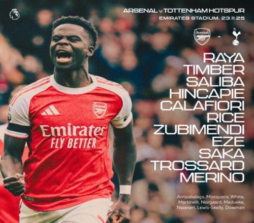 周日,阿森纳公布了英超主场对垒热刺的首发阵容,来自勒沃库森的左脚后卫因卡皮耶替代受伤的加布里埃尔出任主力中卫与萨利巴搭档。哲凯赖什继续缺席,梅里诺客串中锋。此前养伤许久的马杜埃凯和马丁内利均进入大名单,但赛前同样曾在球迷面前露面的队长厄德高并不在名单。
