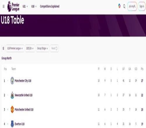 7-0,名宿达伦·弗莱彻执教的曼联U18取得压倒性的胜利,在U18英超联赛北区排名第三。曼联多打一场,仍然落后于曼城和纽卡斯尔联,「蓝月亮」的青年队本周同样大胜,6-0击败诺丁汉森林。