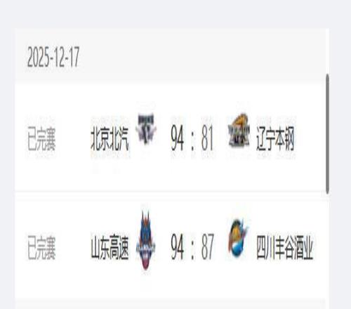 CBA常规赛第三轮开打,12月17日一共只有两场比赛,其中北京首钢队主场94-81大胜辽宁队,在第4节比赛辽宁队主教练连吃两个技术犯规被驱逐;山东高速男篮主场以94-87战胜四川队,由于至今没有注册外援,全华班的四川队遭遇新赛季以来的三连败。