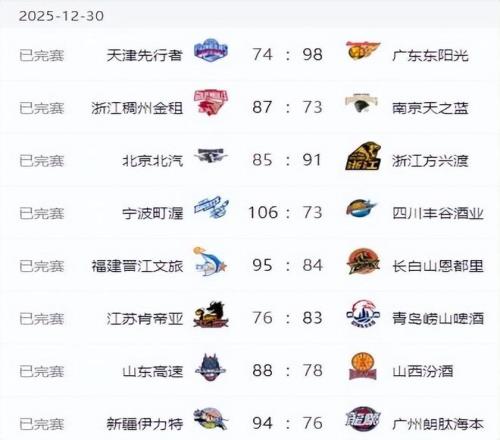 广东男篮联盟第一,广厦送北京赛季首败,山东爆冷,CBA最新排名