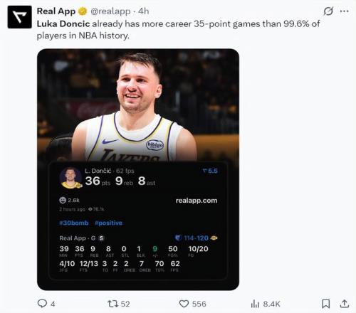 4.东契奇拿到的35+场次已经比NBA历史99.6%的球员还多;