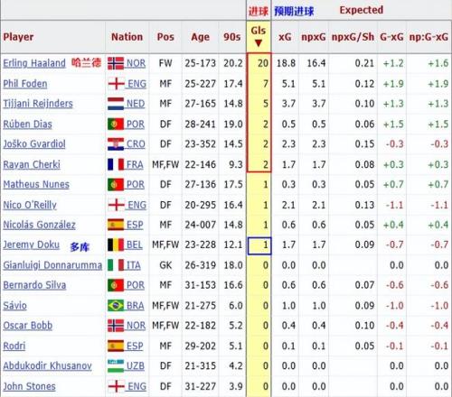 曼城本赛季在英超有一个问题,就是很依赖于哈兰德的进球效率。他21场英超打入20球,但是除了哈兰德之外,第二得分点是7球的福登,随后是5球的赖因德斯,接下去就是2名打入2球的中卫。