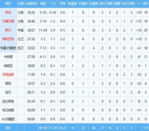 奇才那边,24届榜眼秀萨尔打出生涯之战,出手29次中11球,砍下29分12板3助2断6帽,正负值+16,与克林根(14分20板,正负值-17)对位中更胜一筹。