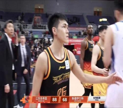 虽然只是一名新秀,但曾在NBL广西威壮拿到过多项荣誉的庞峥麟,本赛季首次登陆CBA,打得完全不像是一名菜鸟,甚至还在前不久入选了全明星首发阵容。而在本轮江苏对阵新疆的比赛中,中国男篮主帅郭士强现场观战,且在将近200名广西老乡面前,庞峥麟再度打出了顶级身手。