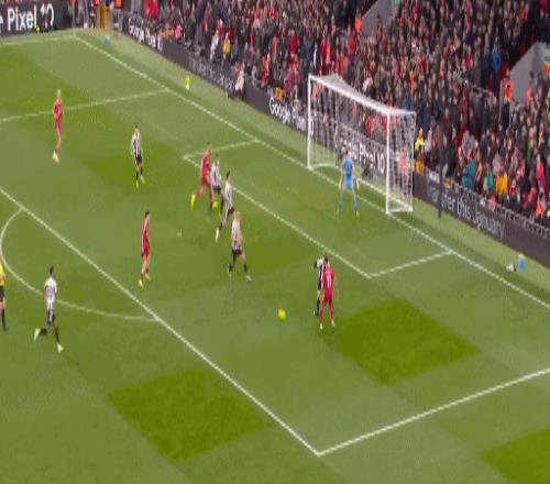 比赛开始后,纽卡斯尔反而踢得更加主动,前20分钟连续制造威胁,红军只能来个防守反击战术,等待机会。第25分钟,哈维-巴恩斯主罚任意球绕过人墙直奔死角,皮球击中立柱弹出,安菲尔德惊出一身冷汗。