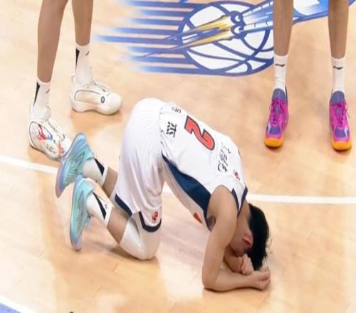 第四节比赛中段,王洪泽也在一次篮下争抢篮板过程中出现受伤情况,险些被鲁吐布拉反关节卸掉胳膊。
