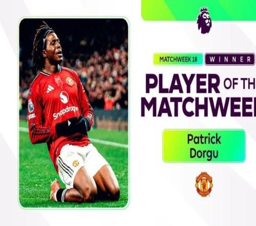 打进制胜球,英超官方:曼联后卫多古当选为第18轮最佳球员