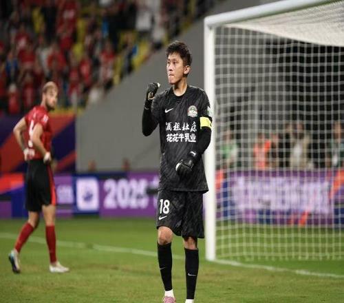↑8月20日,北京国安队球员林良铭(右)在足协杯半决赛中射门得分。新华社记者 胡星宇 摄