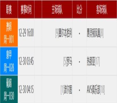 其他赛事比分: