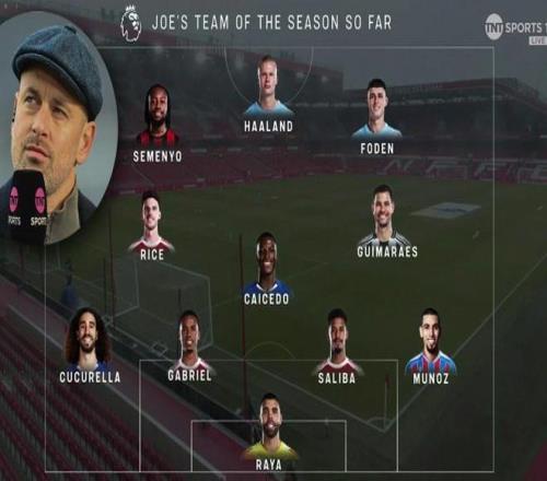 英超赛季接近半程,乔-科尔评选了前18轮最佳阵容,哈兰德领衔锋线,拉亚把守大门。